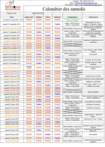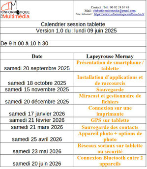 Cette session (assurée par Serge) n'a pas de planning défini car les ateliers sont répétés jusqu'à totale compréhension par chacun des abonnés.